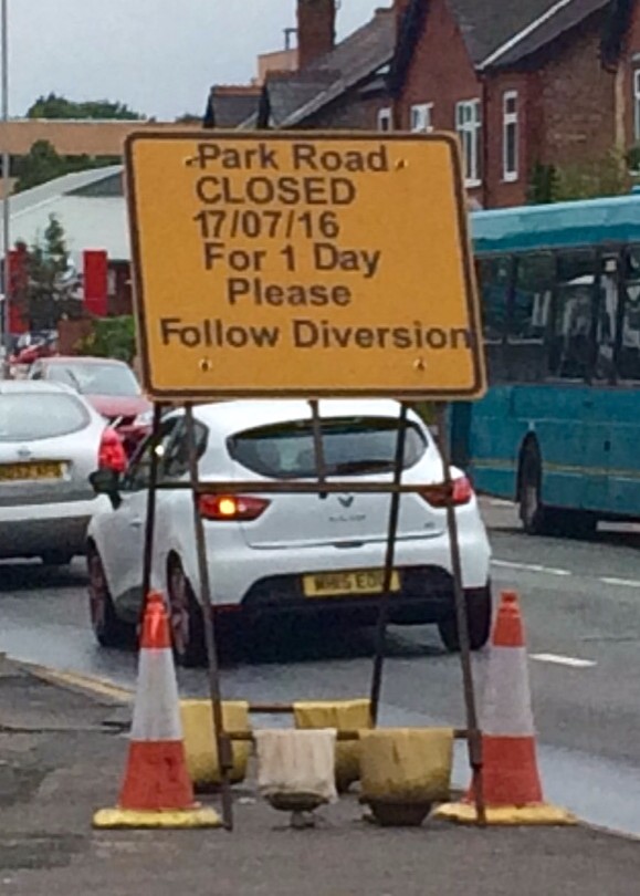 How people coming from Park Road onto the A56 daily are going to cope is another thing, we can only suggest that you look at an alternative route on your sat nav.