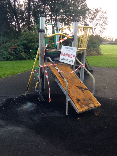 The fire took hold and was intense for a time, it is thought kids set fire to the slide which ‘if true’ does not make any sense, since it was put there for them!