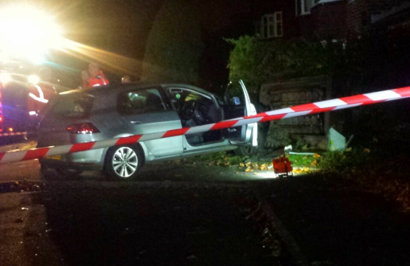 A silver car driven by a male crashed into an electrical box blacking out many roads around Walton Road and Eastway in Sale tonight.
