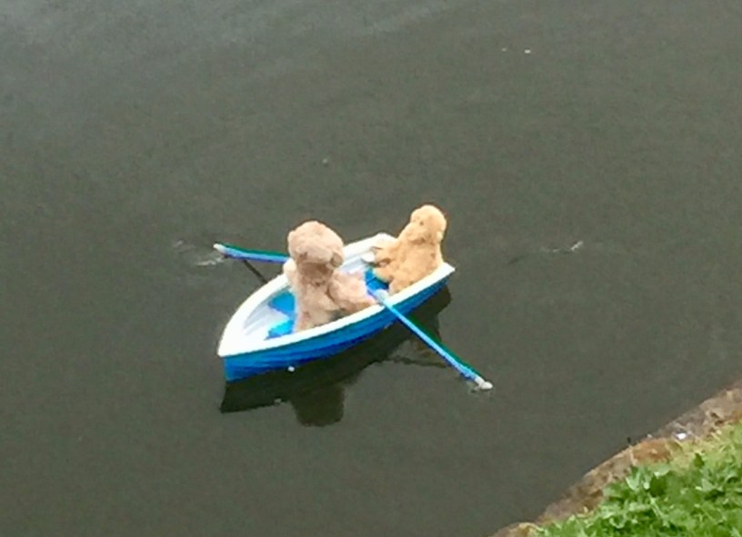 The boat is radio controlled, Timothy was about ten metres or so from the boat and was controlling it with ease, at one point the one of the teddies even waved.