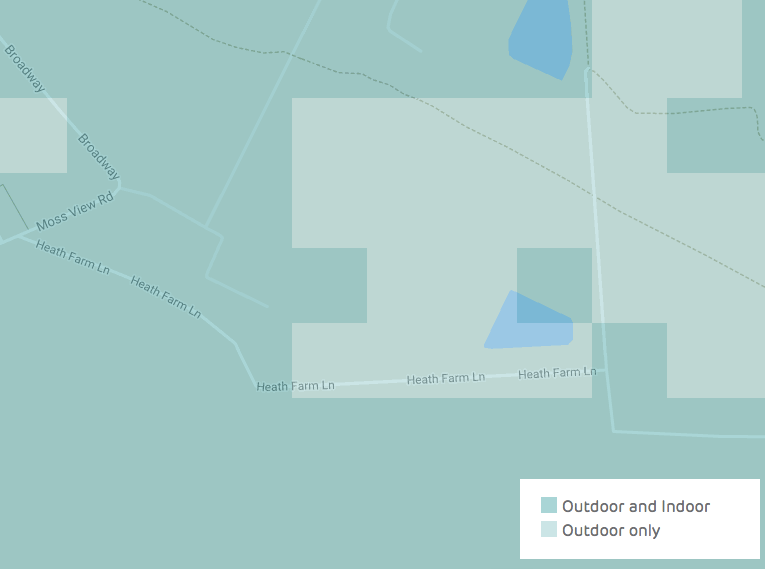 On Heath Farm Lane we can see a big part of that area has no coverage inside on the EE network, this will affect Virgin Mobile customers and any other MVNO (Mobile virtual network operator) piggy backing of the EE signal.
