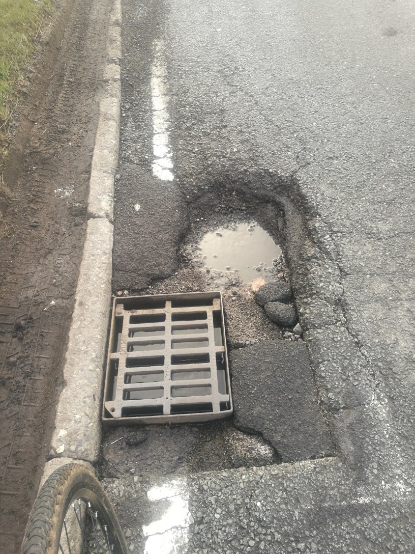 One Trafford decided to do something after months of reports, two days of remedial work I was told in an email had been carried out, brilliant! or so it was thought, having inspected both ways yesterday I can confirm only one pothole was fixed that we could see, two days it took them to fix one scary looking pothole.