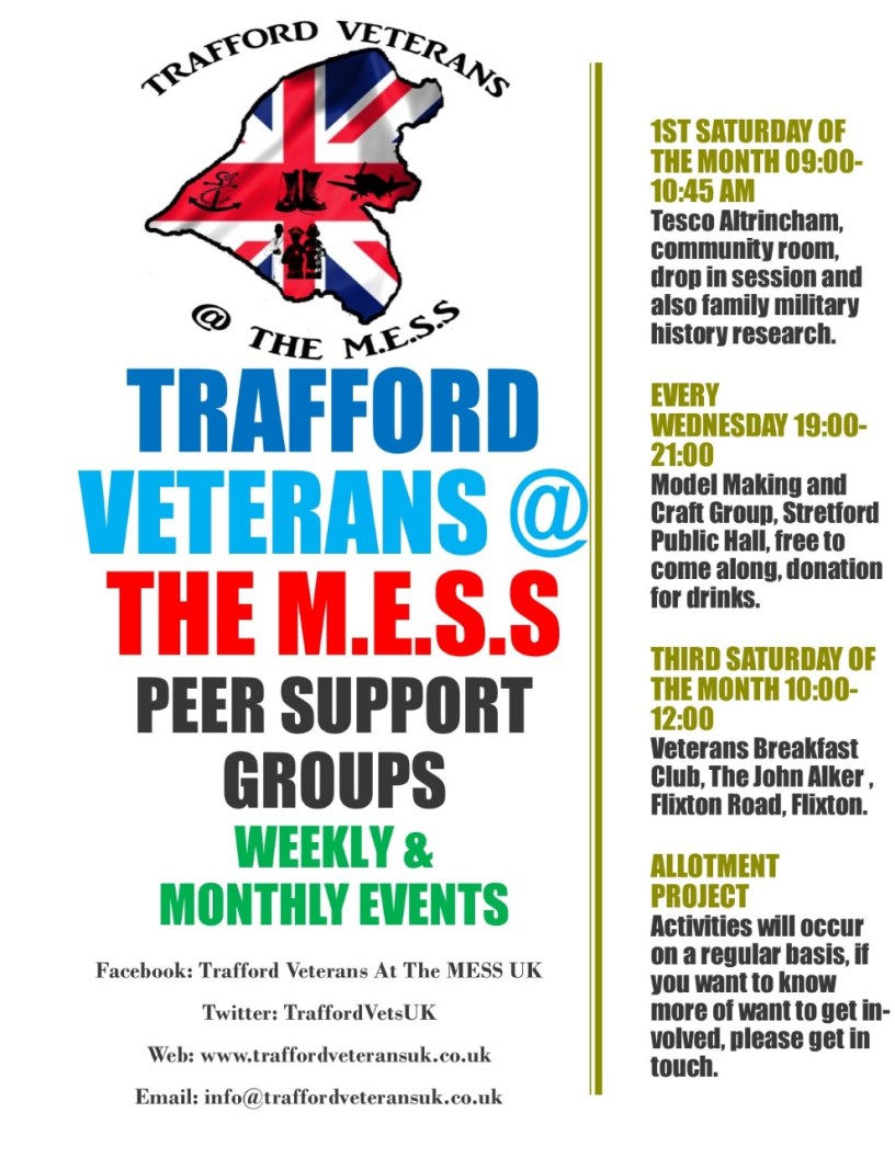 Trafford Veterans is a group of armed forces veterans, emergency service personnel and local volunteers, who all live in Trafford, Greater Manchester the group was formed in 2015 after two of the founding members left the armed forces and faced a struggle with the transition from the military back into their respective communities the struggle was with both physical and mental injuries.