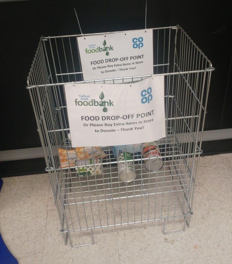 A food donation basket supplied by Trafford South Foodbank can now be found at the front of the Brooklands Co-op foodstore in Sale