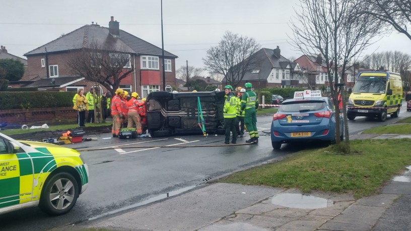 We can tell you that one person a woman aged in her 20’s was taken out of the back of the overturned car a black mini, which was badly damaged.