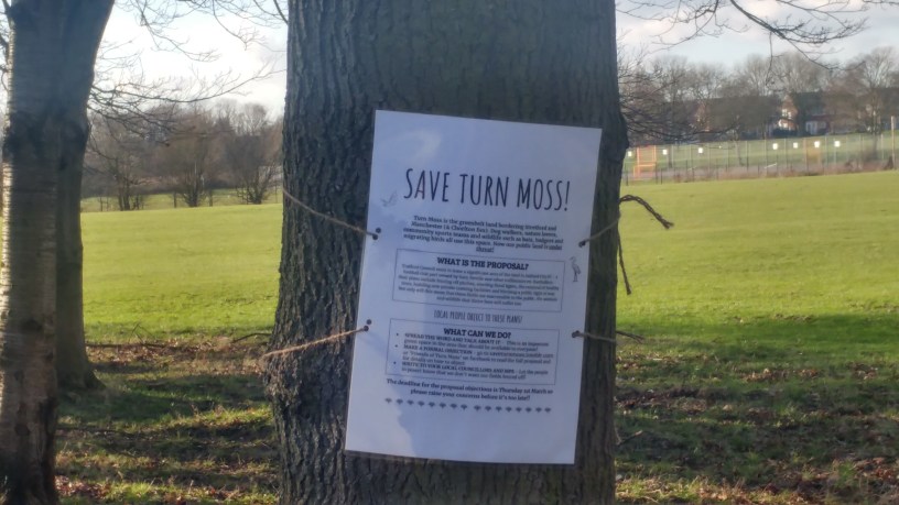 Turn Moss is in good hands with so many people fighting to keep it development free, homes all around Turn Moss also object to the plans put forward by Trafford Council for new artificial football pitches, a training centre, and other facilities that will give Salford FC a new training HQ.