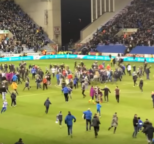 After the ref blew his whistle for full-time after 95 minutes, some Wigan fans went onto the pitch to celebrate, soon after a small number of fans in the Manchester City end became aggressive and started damaging advertisement boards.