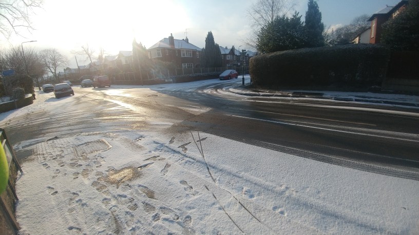The snow fell fairly heavy for around 20 minutes or so leaving Trafford looking very white indeed, despite the nice scenes, the side effects are slippy roads and pavements.