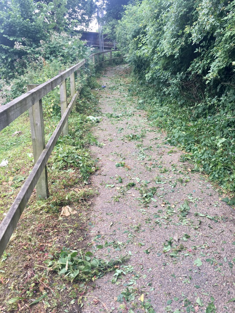 The Bridgewater Canal tow path is much used by all walks of life and takes you away from the disgusting fumes of the A56, in recent times the vegetation has got out of control and the owners of the canal needed to deal with it.