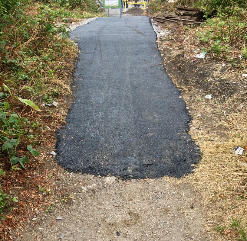 At first they had laid down a ton of stone over where the train line used to be, and now they have thrown a ton of tarmac on it, residents have complained about the sloppy work.