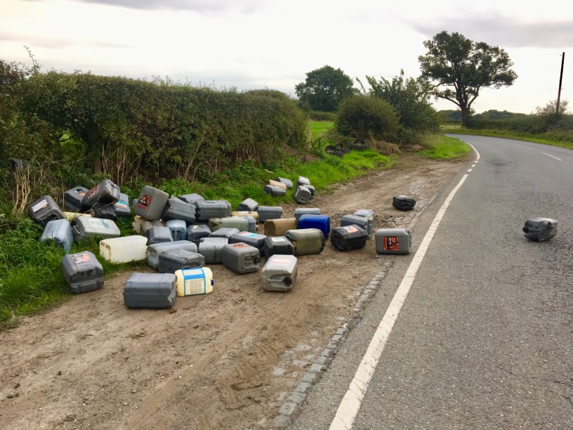 Over 50 containers possibly containing hazardous chemicals were dumped nearer to Broadheath some of these containers were on the road.