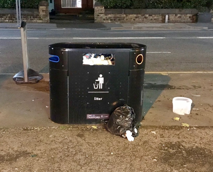 We are aware here in Trafford of some a few issues with recycling and it is for the council to get One Trafford to make sure everyone has the right bin, and are emptied sooner, some bins are not emptied fast enough and so people end up either dumping waste in a grey bin, or worse on the side of the road.