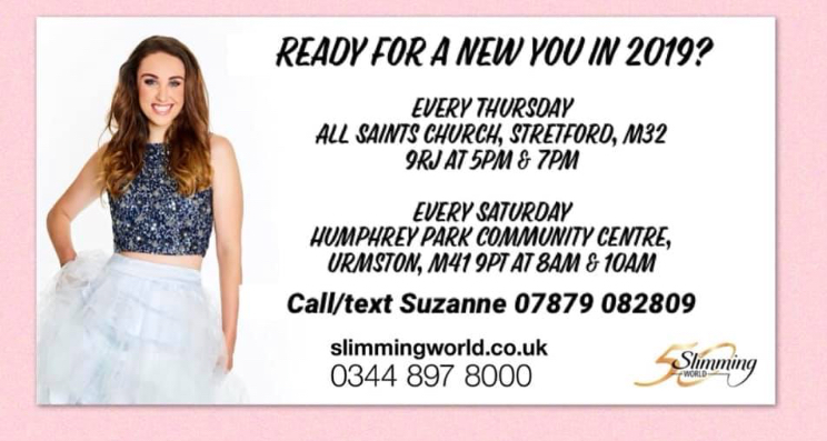 With Slimming World celebrating 50 years of weight loss success now is the best time to join! Her classes are held every Thursday at All Saints Church, Barton Road, Stretford, M32 9RJ at 5pm & 7pm or every Saturday at Humphrey Park Community Centre, Urmston, M41 9PT At 8am & 10am.