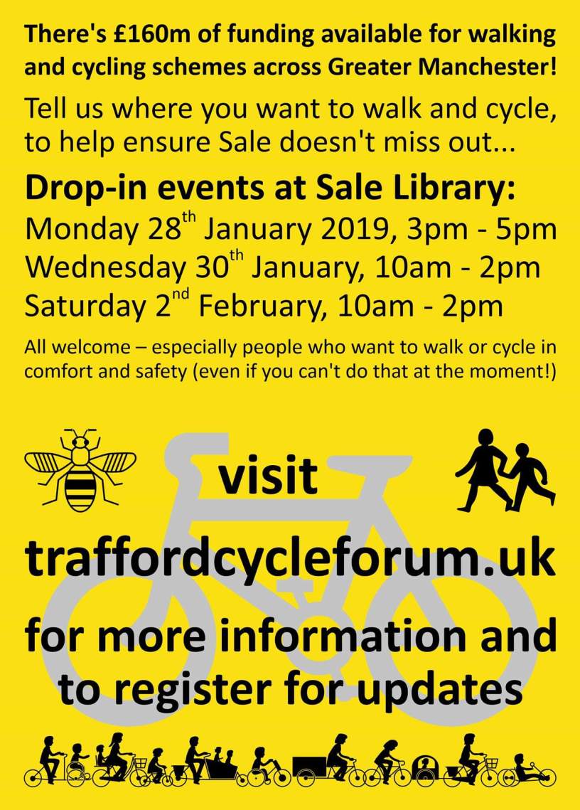 So get yourself down to one of the drop-ins and have your say, you can also register for updates by clicking here >>> www.traffordcycleforum.uk