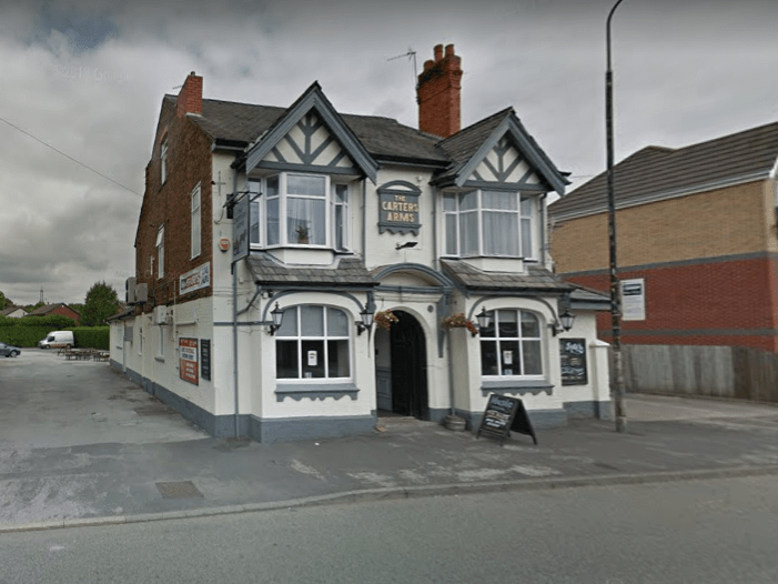Police are investigating after a blue Jaguar XE Sport lost control and collided with The Carters Arms pub on Northenden Road in Sale.