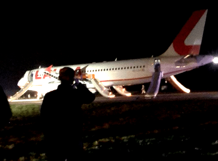 An Lauda A320 from London Stansted to Vienna skidded to a halt tonight just after 8pm after a loud bang passengers and crew were evacuated.