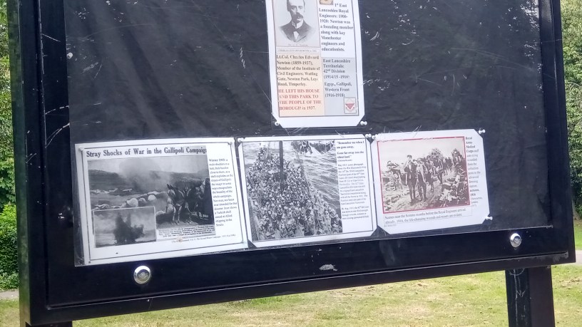 With the help of an unnamed resident and The Freinds of Newton Park Group they contacted Trafford Council for help, the council then applied to the Fields Trust to dedicate a large part of the park to Lieutenant-Colonel Charls Edward Newton who was the original owner of what is now Newton Park.