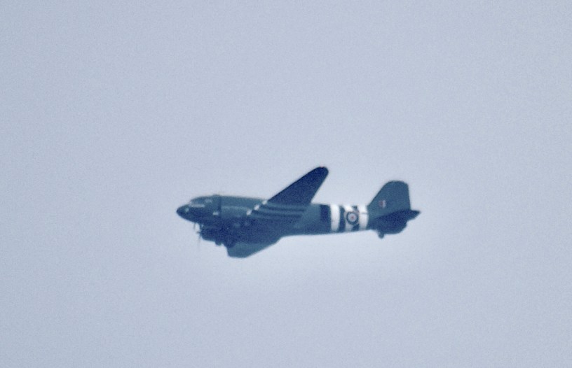 The RAF Dakota C-47 was spotted flying low over Partington this afternoon (June 23rd) it took off from City Airport in Salford.