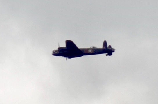 The RAF Lancaster flew low over the Sale area today Aug 11th coming from Blackpool to Woodford.
