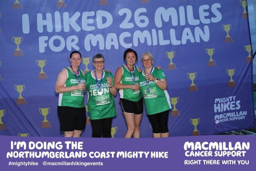 An all-women team from Altrincham Leisure Centre has successfully completed the 26-mile Northumberland Mighty Hike, raising money for Macmillan in memory of their former colleague, swimming teacher, Elaine, who passed away from cancer in November 2018.
