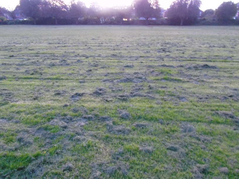 Residents who use a Sale Park are fuming after someone from One Trafford left them with a badly cut football pitch.