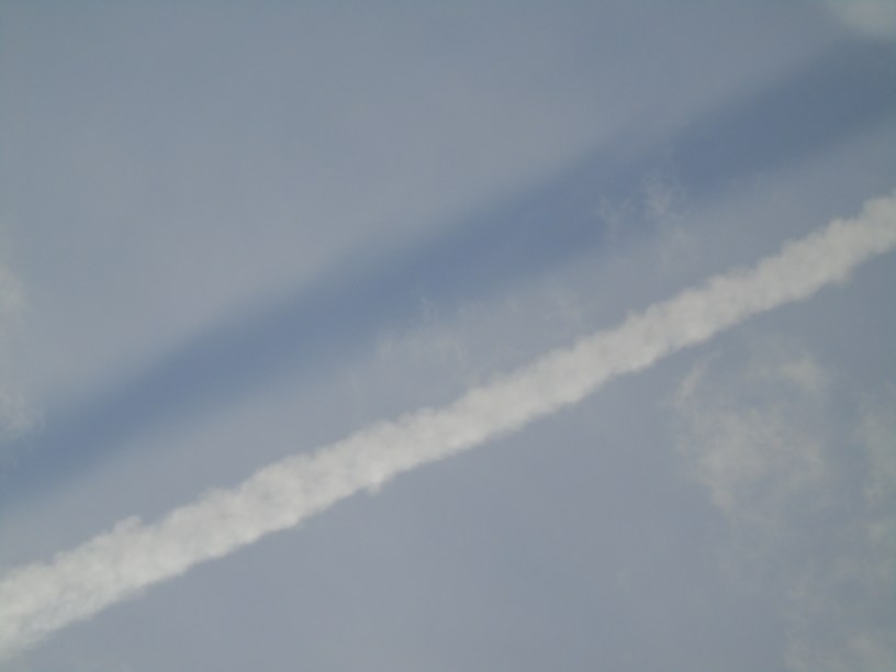 We cannot though explain what the dark cloud is that separates from the white contrail.
