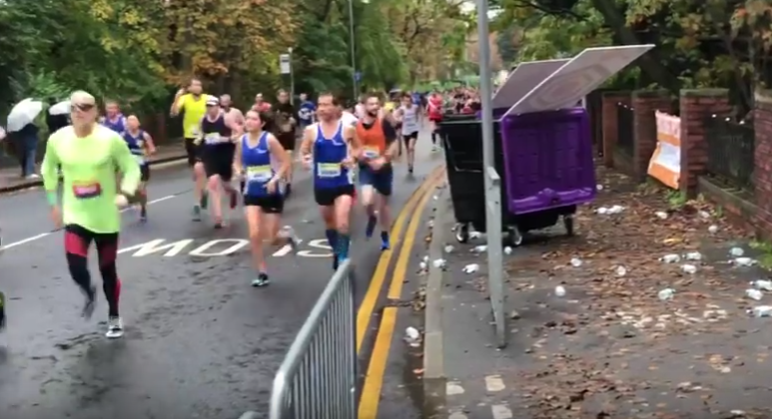 We are very pleased with the organisers of the marathon for understanding and looking at our evidence that runners were not behaving in the right way and in our video proved that slam dunking bottles and throwing them full of water very close to spectators instead of the bins provided could have caused a nasty accident.