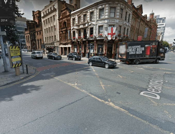 The lorry was turning onto Deansgate from John Dalton Street when it collided with the cyclist.