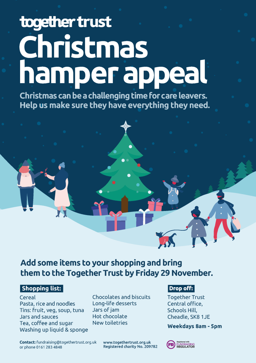 The Together Trust provides special education, care and community support for young people and families across the North West. This Christmas, the charity is collecting donations to make luxury hampers to support young people who have left foster care and residential homes.