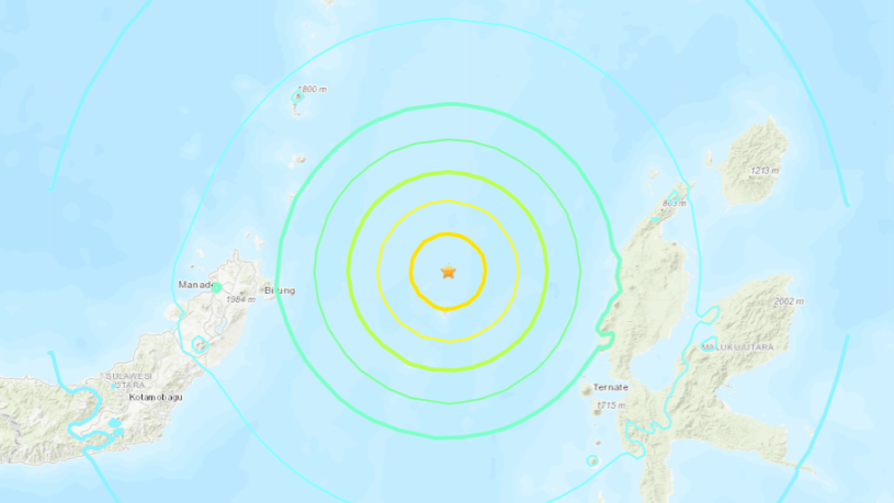 The epicentre was in the waters east of Bitung Indonesia, the 7.4 magnitude was then downdraded to a 7.1 and was then followed by many powerful aftershocks.
