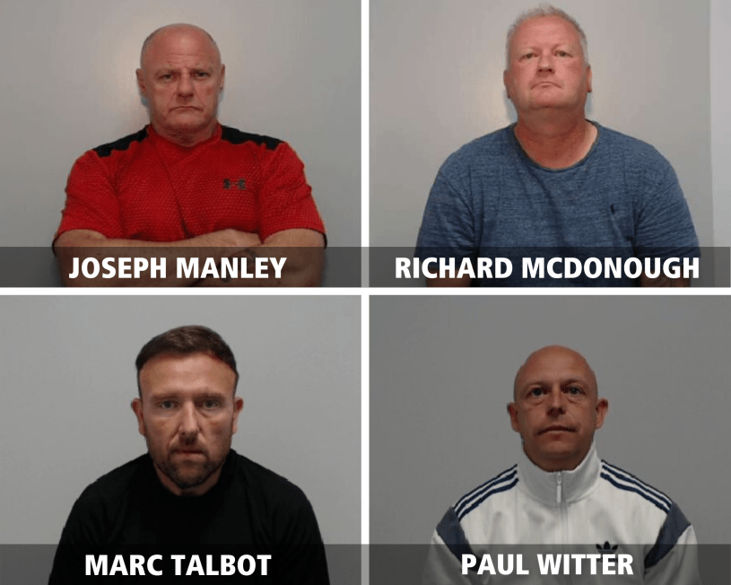 Witter, McDonough, Manley, Talbot, were all arrested on the same day on suspicion of conspiring to manufacture and supply class A drugs.