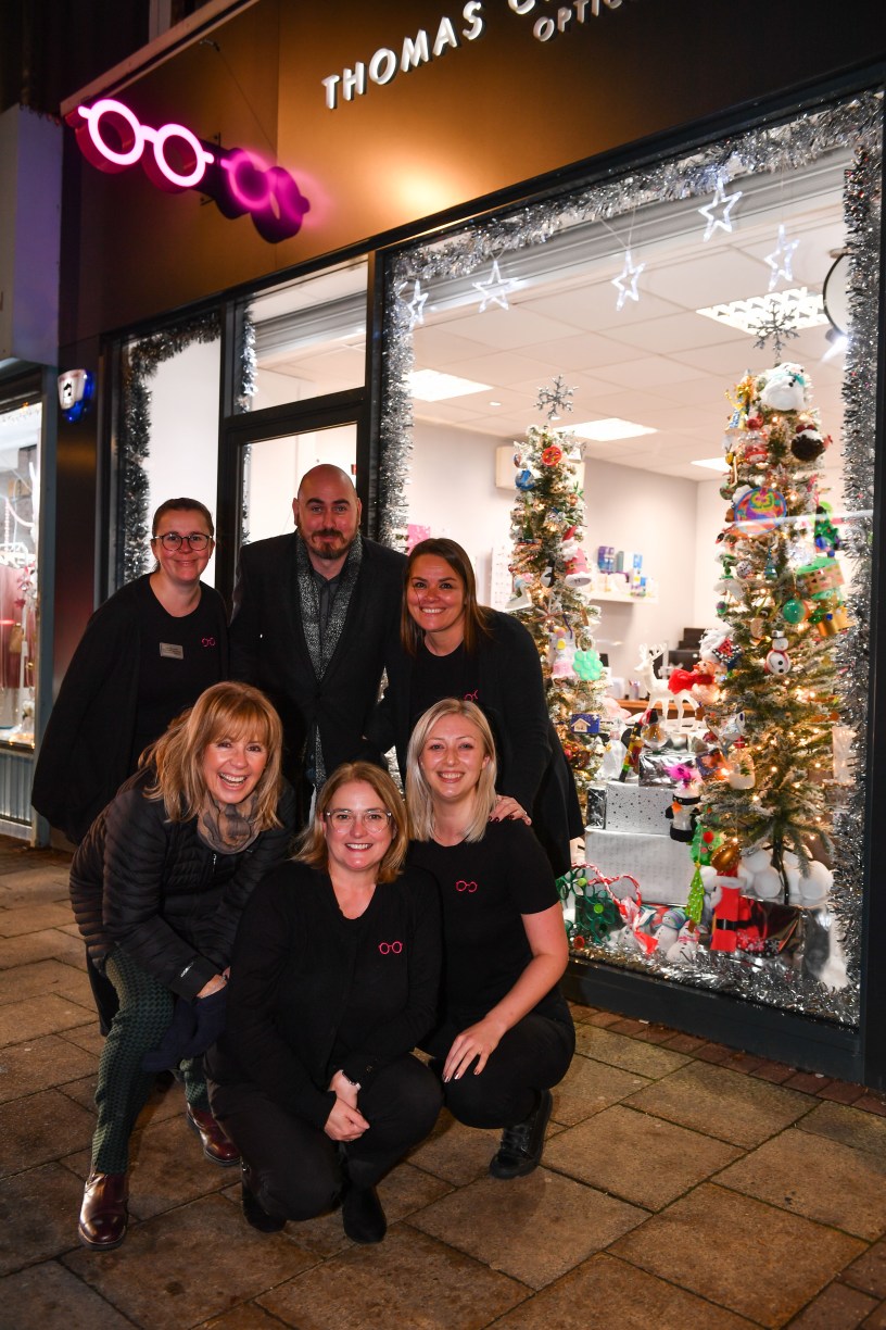 Kay commented: “We are delighted to present the prize to the team at Thomas Carter Opticians. The window was fabulous, and we could tell that a great deal of time and effort had gone into the creation from local school children and also the in-store team. It combined the lovely lights that we were looking for with everything else that is important about Christmas; children, family, magic and sparkle plus an important message about recycling.”