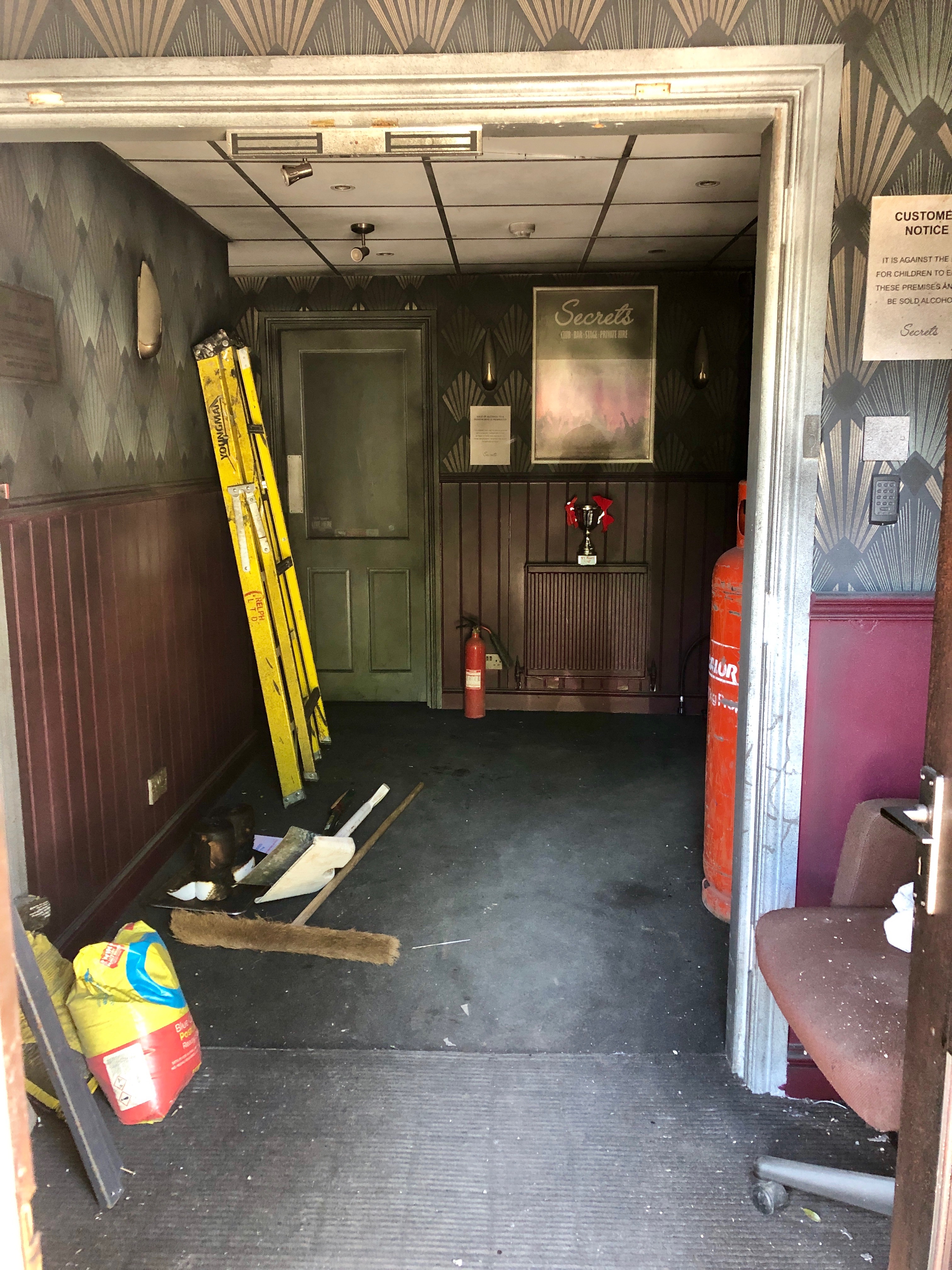 Here is the entrance to the 'Secrets club' on the set of the crime drama Traces in Partington