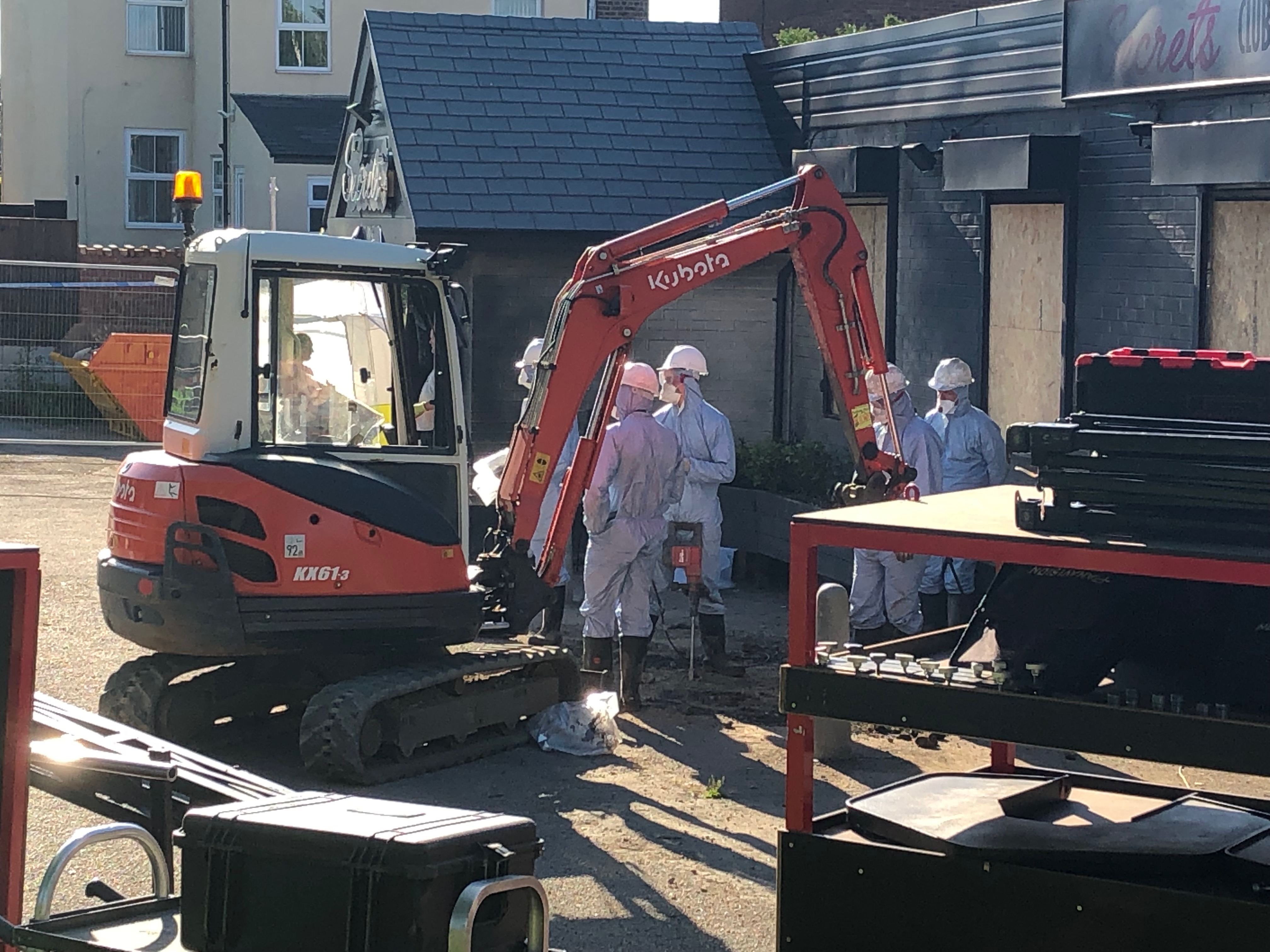 Here is a great picture of a group of forensics and a digger just outside the old social club