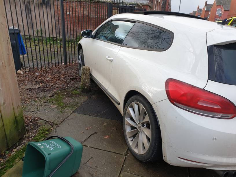 GMP Stretford on Twitter had a dig at the offenders driving skills after the car they was in ended up stuck in between bollards.