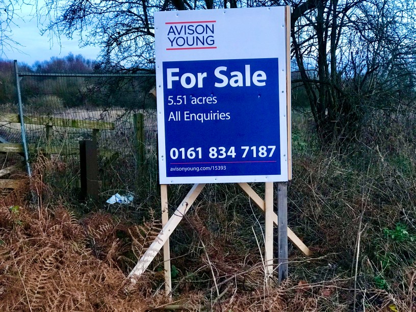 Five acres of land opposite Cross Lane Park has suddenly gone up fpr sale in Partington.