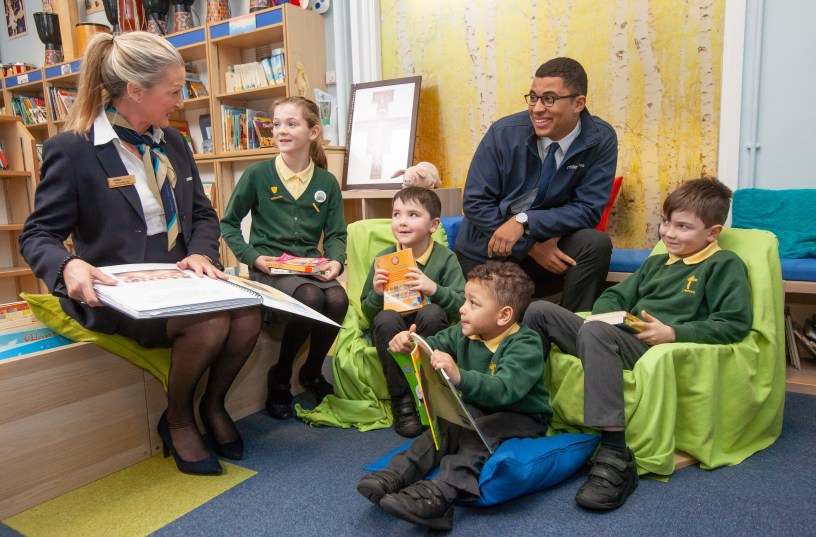 House builder Miller Homes gives a primary school in Stretford a £500 donation for it’s library.