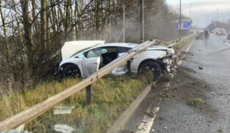 Police were called shortly before 10am following a collision on Carrington Spur, between a Lamborghini Gallardo and a Vauxhall Astra.