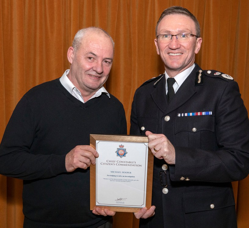 Chief Constable Ian Hopkins, presented Michael with his award, and said: