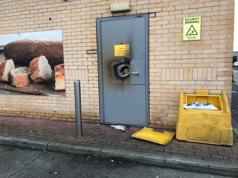 It is not known when the ATM’s at Tesco will be working again and when the damage to the side door will be fixed.