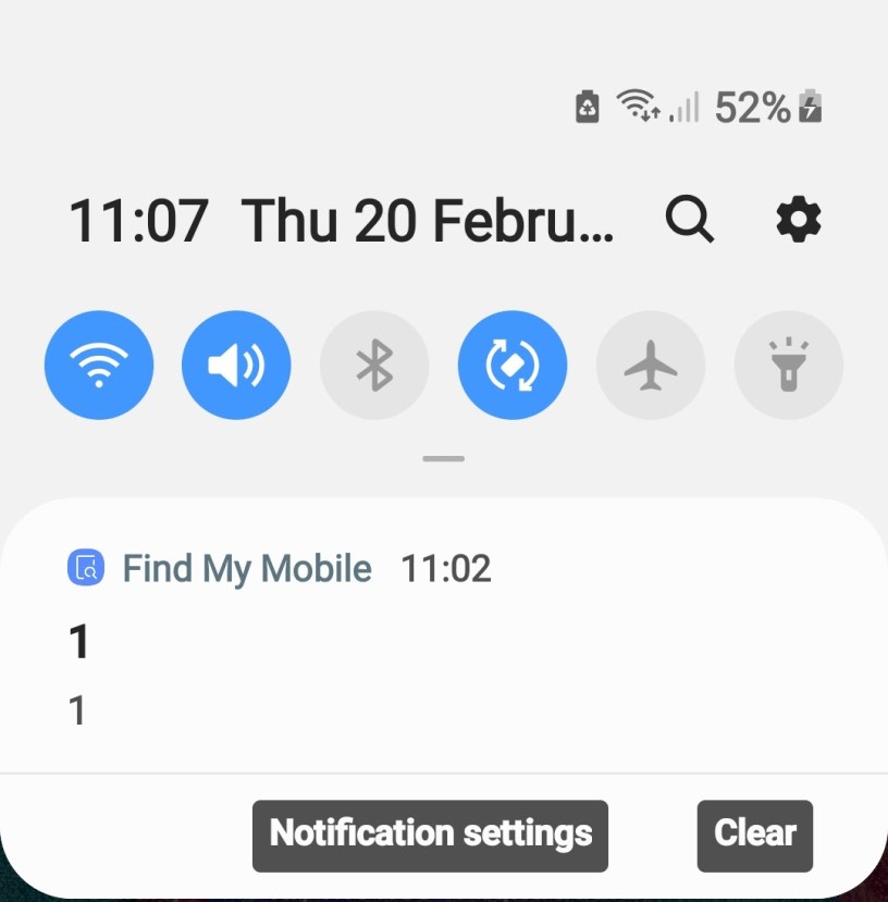 The notification was from Find My Mobile and read 1 1 and confused a lot of people who took to twitter to find out what was going on.