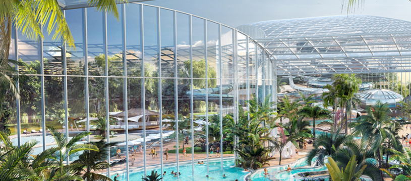 A large family zone will include waterslides, a wave pool, indoor and outdoor pools, steam rooms, exotic palm tree relaxation areas and dozens of other fun, relaxing and healthy activities, all in a perfect tropical environment.