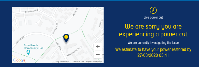 Either way it looks like they will be in the dark for the rest of the night as power is predicted to come back on at 03.41am.