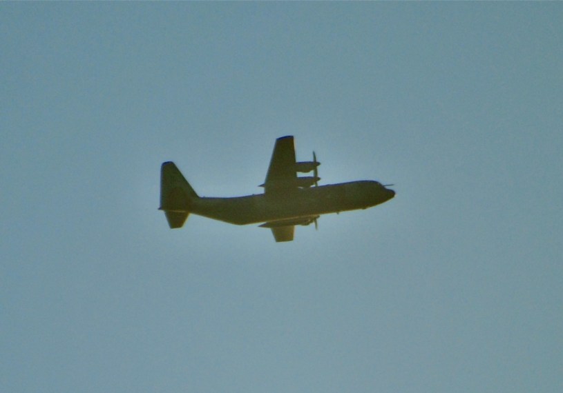 A RAF 130J Hercules transporter aircraft came over the Sale area twice this evening.