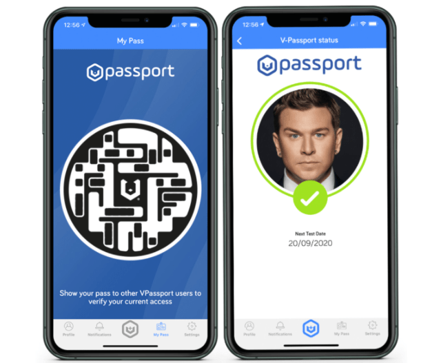 • V-Health Passport™ also has its own unique contact tracing capability ‘True Contact™’ built within the technology designed for travel, sports stadiums, venues, factories, offices and construction sites.