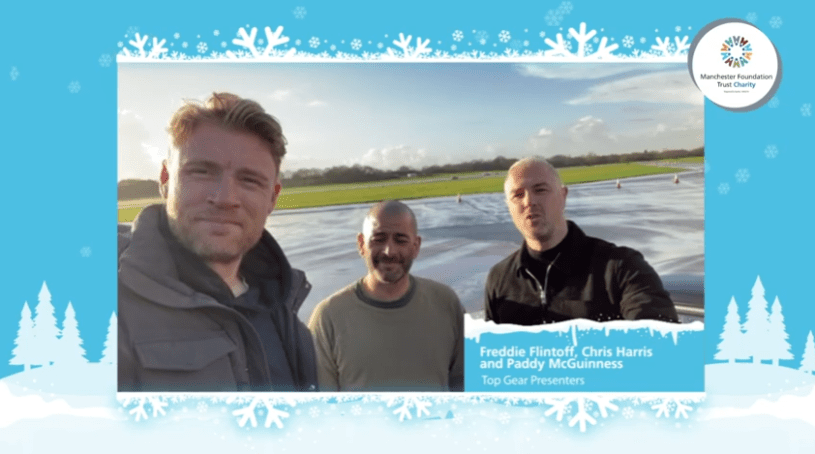TOP GEAR presenters Freddie Flintoff, Chris Harris and Paddy McGuinness are just some of the famous faces who have wished staff at Manchester University NHS Foundation Trust a Merry Christmas.