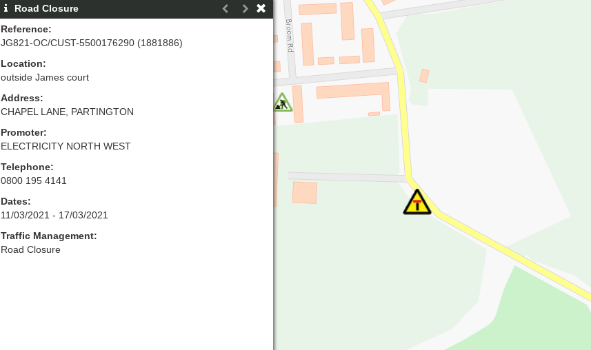 Transport for Greater Manchester road works map which is updated daily shows the new date as March 11 until March 17 2021, it does say Electric North West however we believe it could have something to do with the 5G mast.