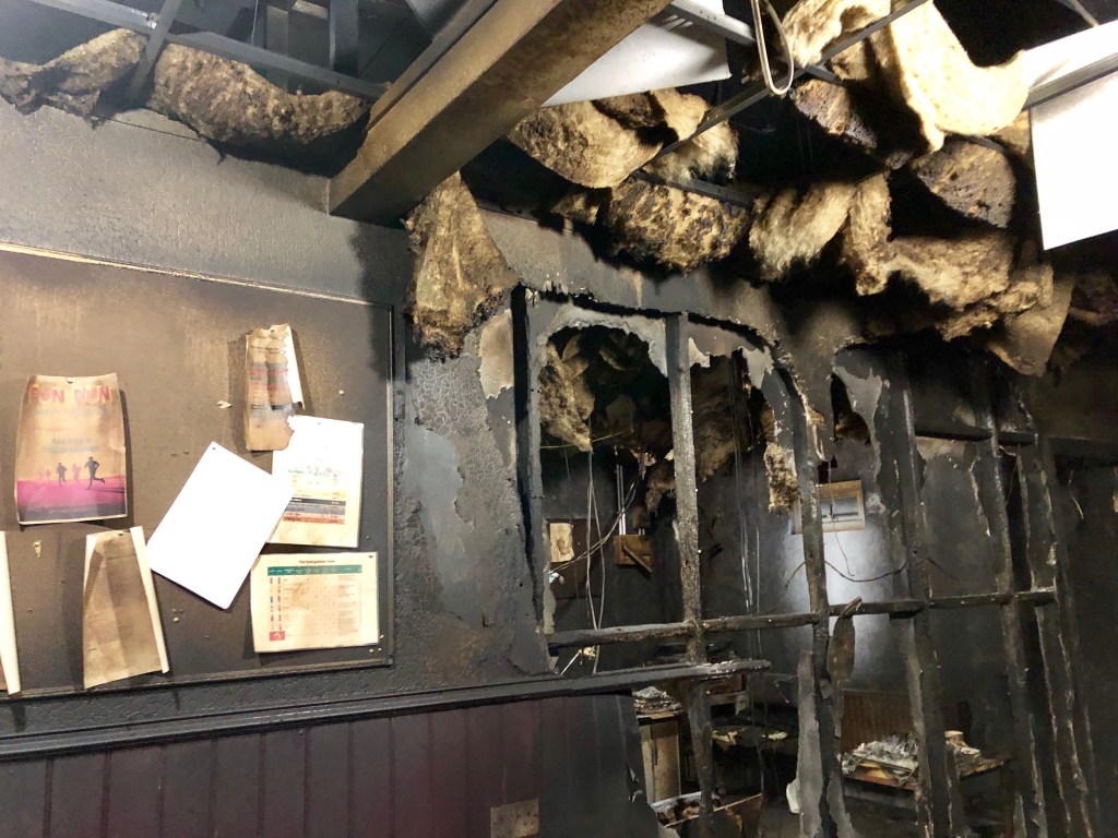 Once the fire had gone out residents may have thought it could have been saved as the outside of the building looked untouched however getting closer you could see how bad the fire must have been as everything was gone, all black and smelling strong of smoke weeks after the fire.