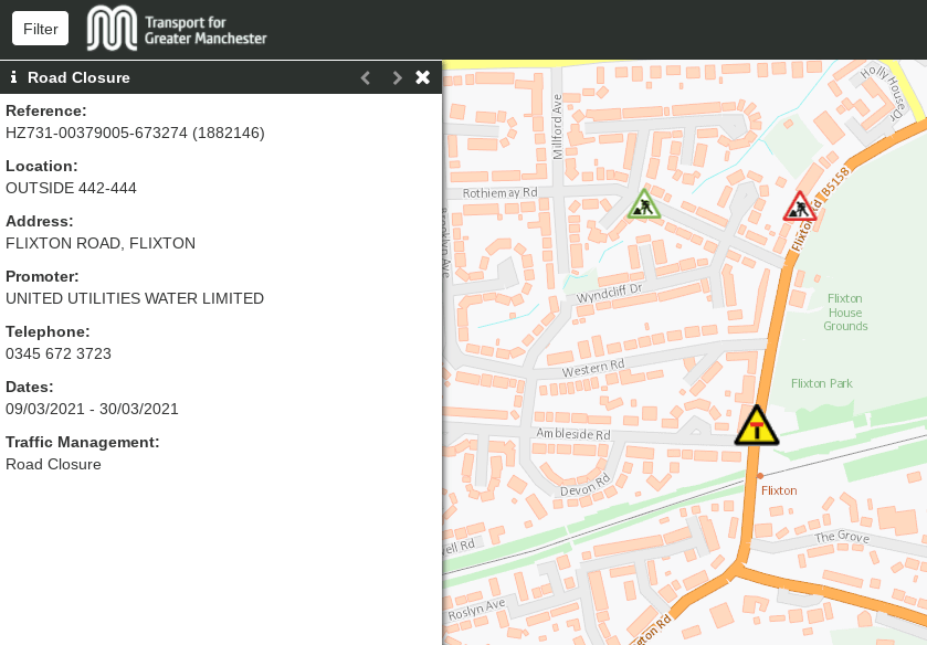 According to TFGM road works Flixton Road will be closed and for several days.