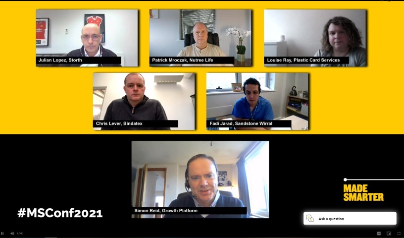 Another session focussed on upskilling workforces featured Sarah Poynter of Arden Dies in Stockport, who has enrolled on the Made Smarter Leadership Programme, developed in partnership with Lancaster University Management School, and Rebecca Lee-Panton of Fabricon Design in Ashton-under-Lyne who has benefited from accessing Made Smarter’s digital technology internship programme.